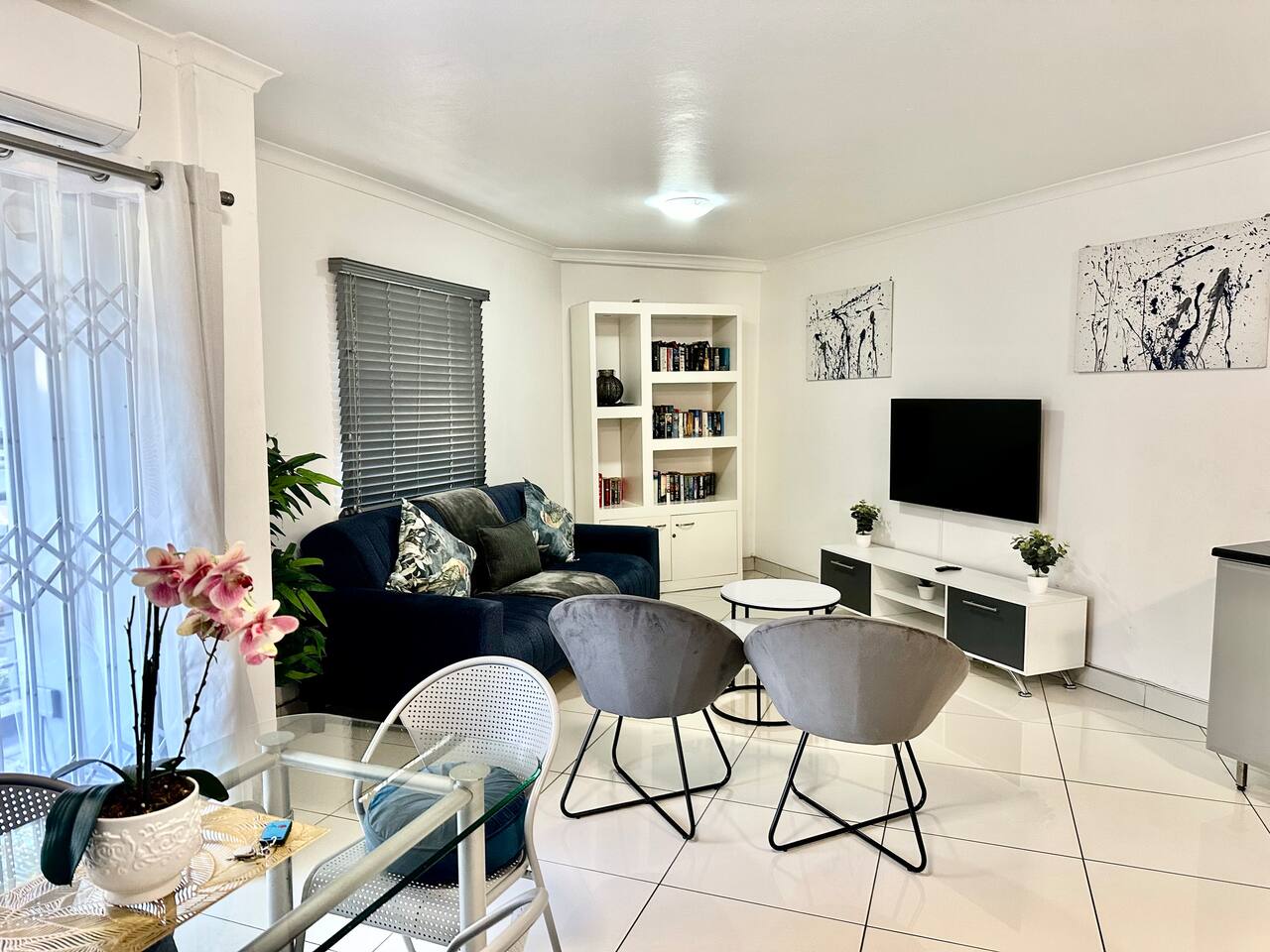 ✨ Spacious Living for Ultimate Comfort Step into a bright, airy apartment featuring: - 2 spacious bedrooms with ultra-comfortable Sertapedic Queen beds - 2 modern bathrooms, one with a shower and toilet, and the other with a separate toilet and basin for added convenience - Open-plan living & dining area with elegant decor and seating for 4 - Fully equipped kitchen with a large Hi-Sense frost-free fridge, air fryer, microwave, electric stove, pots & pans, utensils, and more - Comfortable lounge with seating for 6, a 50” Samsung UHD Smart TV with YouTube Premium, and a curated library of 150+ fiction books for your enjoyment Sleeping Arrangements: - 2 Bedrooms, each with a queen-size bed - Comfortable sleeper couch in the lounge 🏡 Balcony & Outdoor Bliss Slide open the glass door and enjoy your morning coffee or evening sundowner on the private balcony. Or head up to the rooftop pool and braai/BBQ area, boasting uninterrupted 360° views of Durban’s inland and distant mountains. It’s the perfect spot to catch the sunset on a clear evening. 🛏️ Bedrooms Designed for Rest & Productivity - Both bedrooms feature built-in cupboards and charging ports with USB outlets at each bedside table - The secondary bedroom includes a dedicated workspace for remote work or study - Quality linens and thoughtful touches make this space a restful retreat 💡 Thoughtful Amenities for a Hassle-Free Stay - Air-conditioning in the lounge (powerful enough to cool the entire unit) - Uncapped fibre internet - Washer & dryer, steam iron, ironing board, and hairdryer by Bennett Read - 52-piece first aid kit for emergencies - Smoke detector for added safety - 1 secure undercover parking bays with additional roadside parking available 🛡️ Safety & Security - Burglar guards and a Trellidor security gate - 24/7 security camera surveillance with a guard stationed at the building entrance - Controlled access to the building for peace of mind 🌆 Prime Location - Just 1.3km from Gateway Theatre of Shopping - 5-minute walk to The Crescent Shopping Centre - Surrounded by cafes, bistros, and popular eateries — including RK’s - Vegetarian Takeaway and Crown of India, just 1 minute away - Umhlanga Beach is a short 8-minute drive - Umhlanga Ridge Children’s Park is a 4-minute walk, and Chris Saunders Park is just 8 minutes away on foot