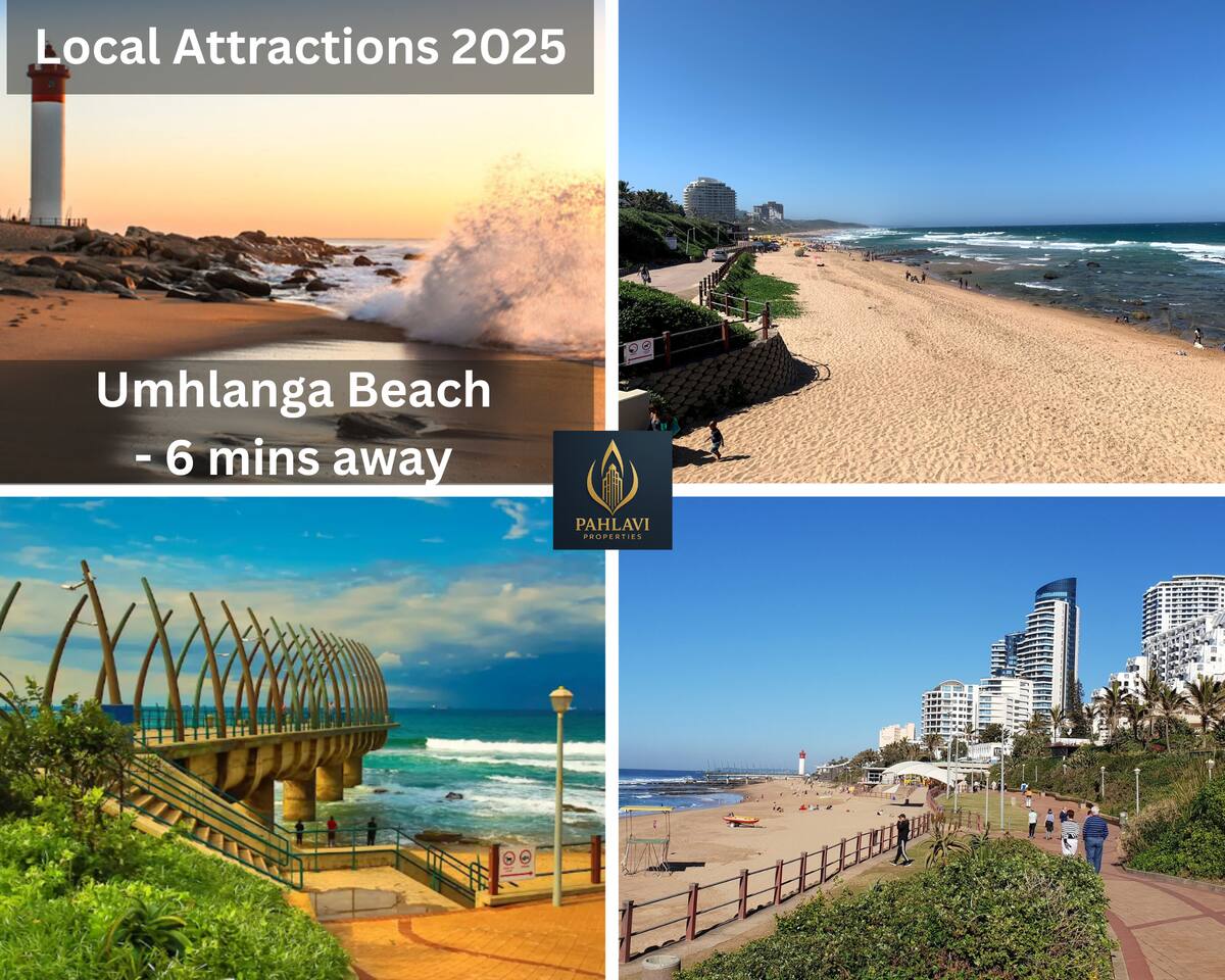 Located in the heart of Umhlanga Ridge, you will find this modern apartment sized at 101sqm. This apartment can sleep 4 adults and 2 children as it has 2 foldaway single beds for the lounge along with the 2 x King size beds. The apartment encompasses two bedrooms, two bathrooms, an open-plan dining area, a kitchen, and a lounge as well as a balcony. Outdoor spaces feature a large Pool & BBQ/Braai area. You will have undercover parking behind a secured gate that is manned at all times