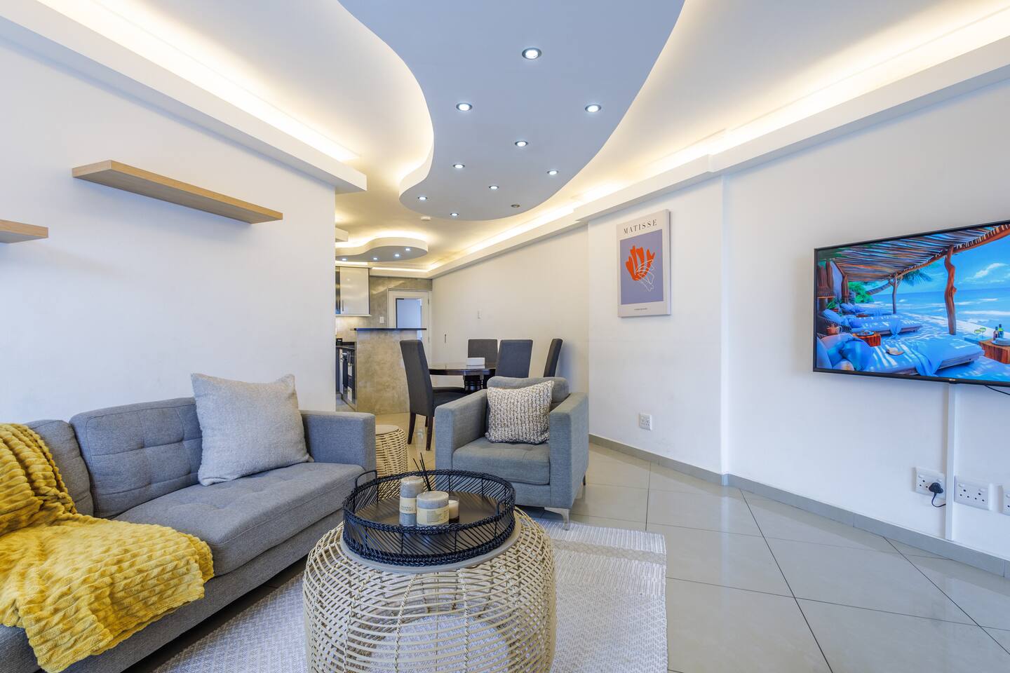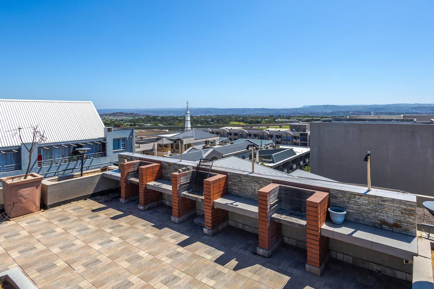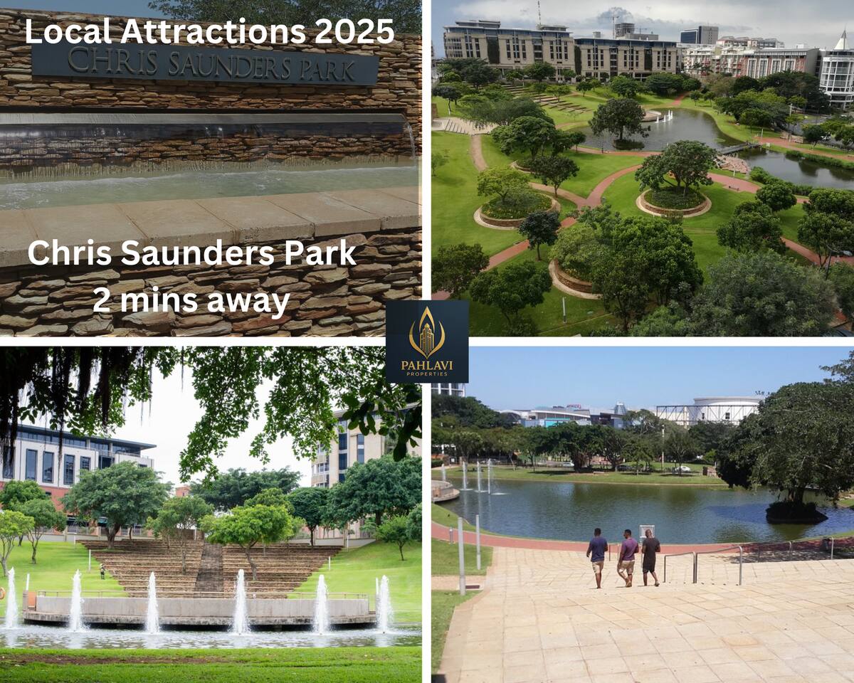 🏠 Your Space: Sophisticated Design Meets Comfort This tastefully decorated apartment sleeps up to 6 guests and includes: - Three plush king-size bedrooms with crisp linens, built-in wardrobes, and bedside USB charging - Two modern bathrooms: one with a large walk-in shower and one with a bathtub — perfect for soaking - A bright, open-concept lounge and dining area with seating for 6 - A private balcony where you can sip coffee or unwind as the sun sets Sleeping Arrangements: - 3 Bedrooms, each with a king-size bed 📺 Entertainment & Connectivity - Smart TV in the lounge - Fast, uncapped fibre internet 🍳 Fully Equipped Kitchen - Electric stove, microwave, kettle, toaster, and full-size fridge/freezer - Cookware, utensils, and braai tools — ideal for home-cooked meals or rooftop BBQs ❄️ Cool & Comfortable - Air-conditioning in the lounge - Naturally cool interior thanks to clever design 🧺 Laundry & Essentials - Washing machine - Steam iron, ironing board, quality hairdryer, and first aid kit 🌇 Rooftop Retreat - Head to the rooftop terrace and enjoy: - A sparkling swimming pool with panoramic views - Built-in braai (BBQ) facilities - A front-row seat to Durban’s inland sunsets 🚗 Parking & Security - One secure undercover parking bay - Additional free street parking - Smart lock access, 24/7 monitored CCTV, and burglar bars throughout 📍 Prime Location - 2 min to Gateway Theatre of Shopping - 5 min walk to The Crescent Shopping Centre - 6 min drive to Umhlanga Beachfront - Local cafés and takeaways just steps away - Nearby green spaces like Chris Saunders Park and Umhlanga Ridge Children’s Park
