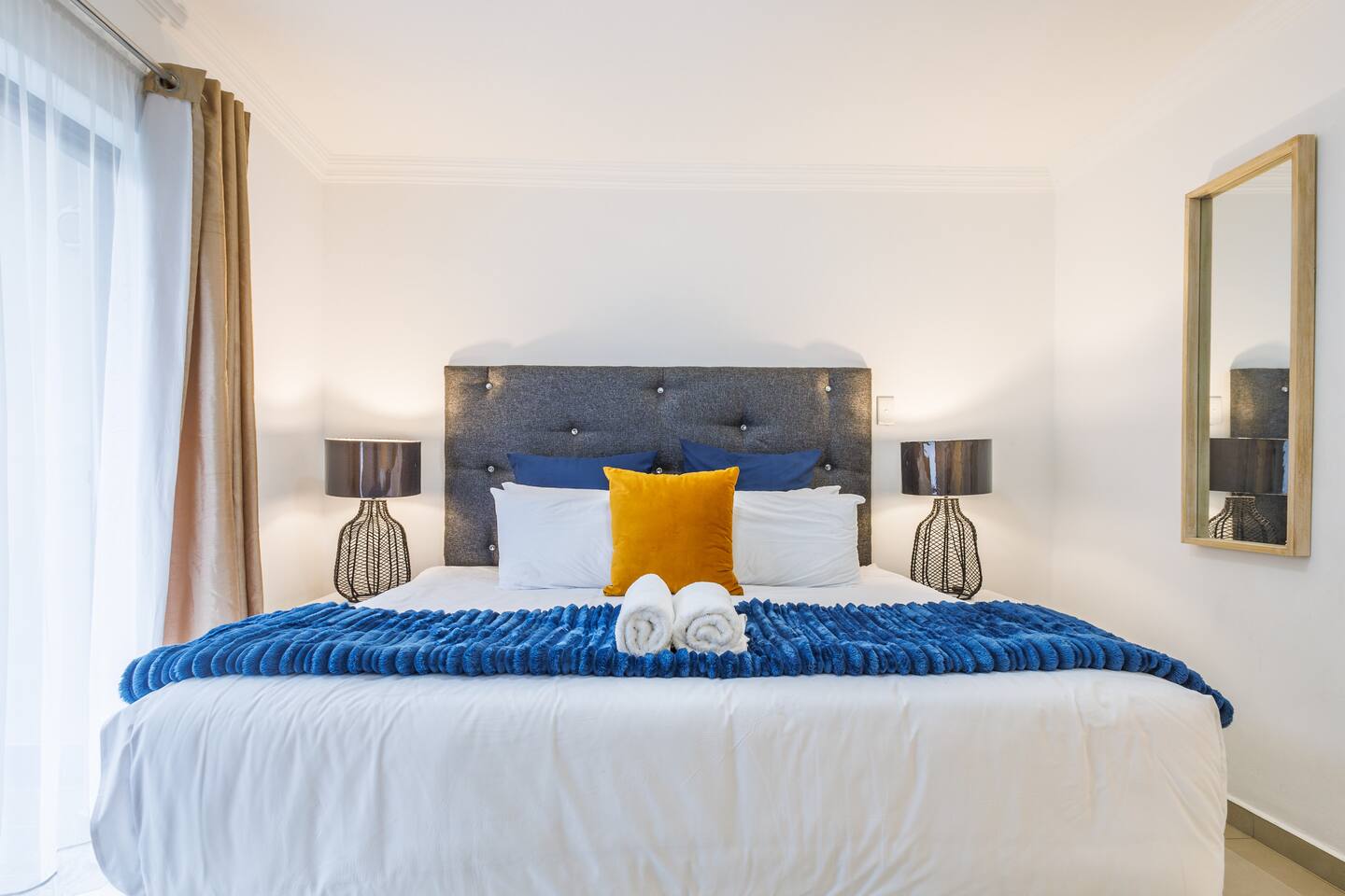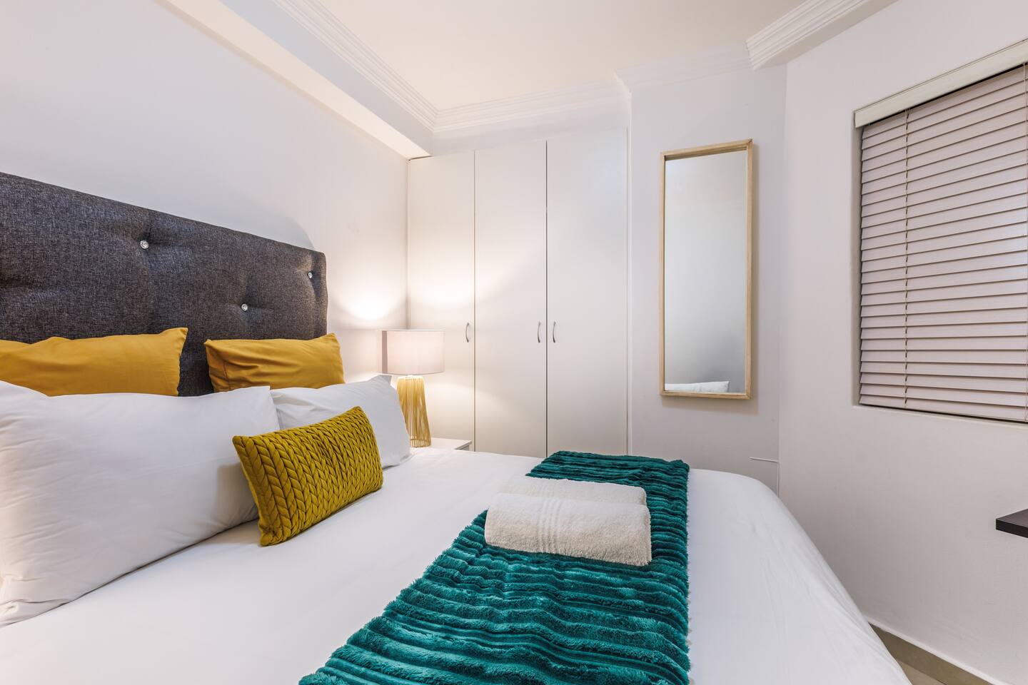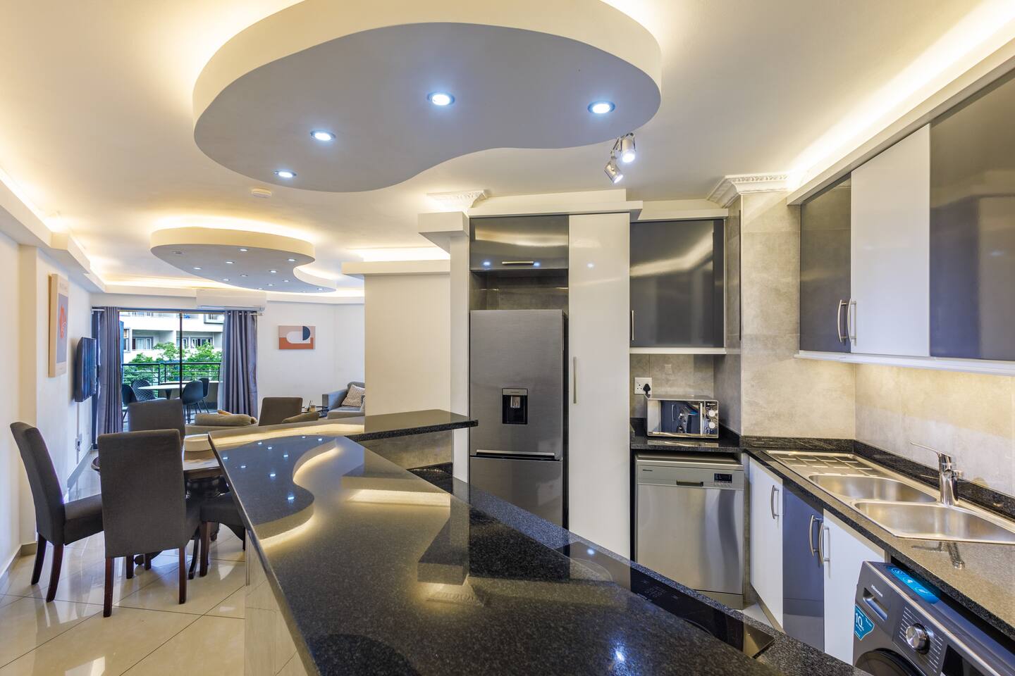 🏠 Your Space: Sophisticated Design Meets Comfort This tastefully decorated apartment sleeps up to 6 guests and includes: - Three plush king-size bedrooms with crisp linens, built-in wardrobes, and bedside USB charging - Two modern bathrooms: one with a large walk-in shower and one with a bathtub — perfect for soaking - A bright, open-concept lounge and dining area with seating for 6 - A private balcony where you can sip coffee or unwind as the sun sets Sleeping Arrangements: - 3 Bedrooms, each with a king-size bed 📺 Entertainment & Connectivity - Smart TV in the lounge - Fast, uncapped fibre internet 🍳 Fully Equipped Kitchen - Electric stove, microwave, kettle, toaster, and full-size fridge/freezer - Cookware, utensils, and braai tools — ideal for home-cooked meals or rooftop BBQs ❄️ Cool & Comfortable - Air-conditioning in the lounge - Naturally cool interior thanks to clever design 🧺 Laundry & Essentials - Washing machine - Steam iron, ironing board, quality hairdryer, and first aid kit 🌇 Rooftop Retreat - Head to the rooftop terrace and enjoy: - A sparkling swimming pool with panoramic views - Built-in braai (BBQ) facilities - A front-row seat to Durban’s inland sunsets 🚗 Parking & Security - One secure undercover parking bay - Additional free street parking - Smart lock access, 24/7 monitored CCTV, and burglar bars throughout 📍 Prime Location - 2 min to Gateway Theatre of Shopping - 5 min walk to The Crescent Shopping Centre - 6 min drive to Umhlanga Beachfront - Local cafés and takeaways just steps away - Nearby green spaces like Chris Saunders Park and Umhlanga Ridge Children’s Park